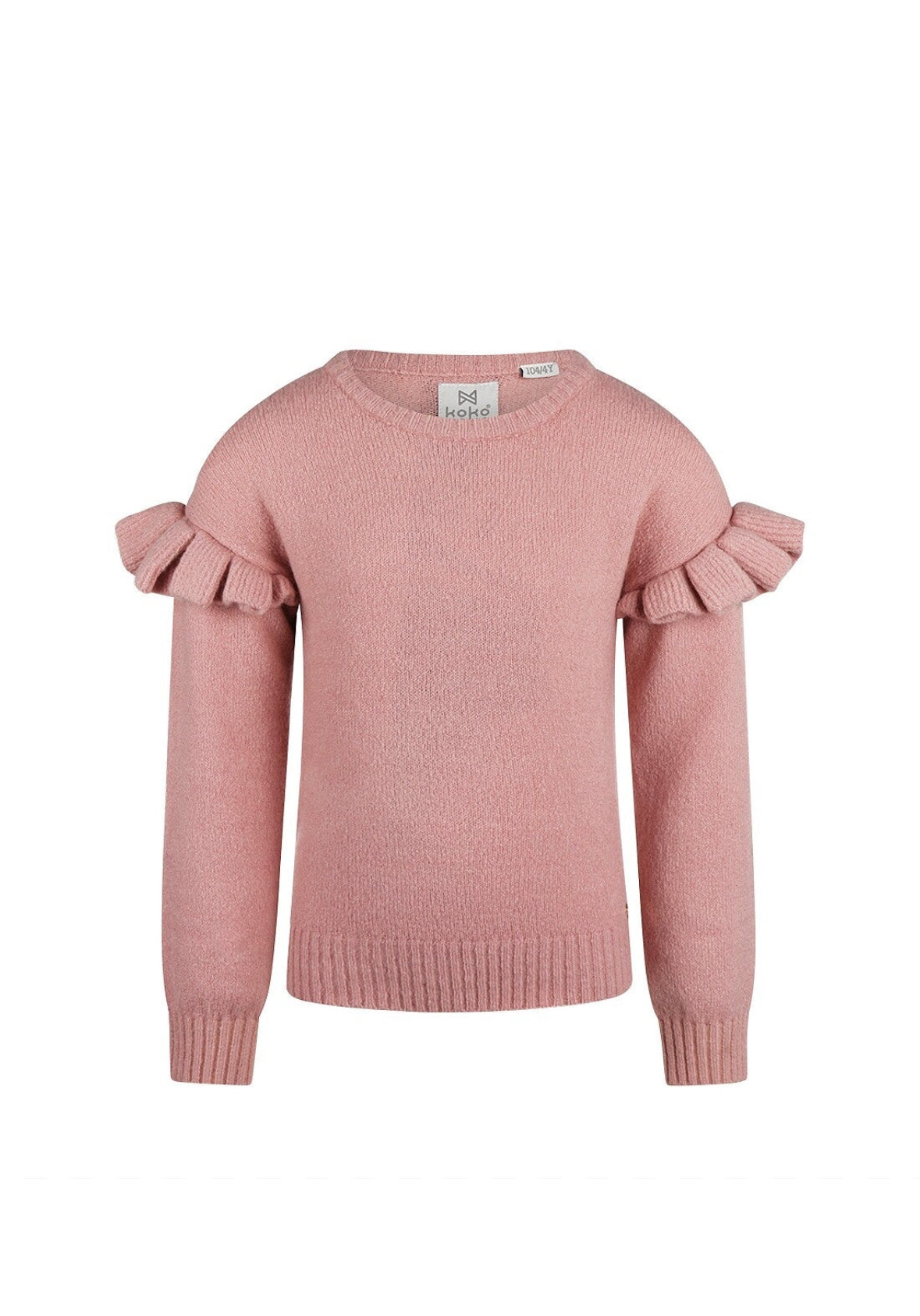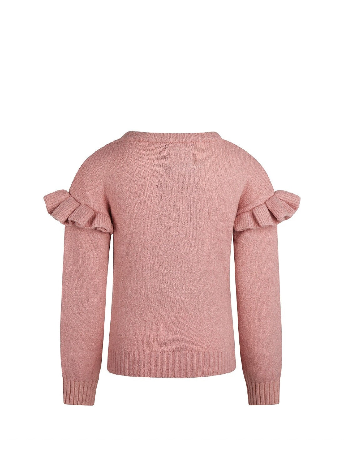 Voeg wat flair toe aan het herfstseizoen met deze hippe Koko Noko trui. De trui is gemaakt van een fijn en zacht breisel in oudroze tint. De ruffles op de mouwen maken deze sweater extra mooi. De meisjes trui heeft een dropped shoulder dat hem een beetje een oversized look geeft. Combineer hem met een mooie flared broek of jeans uit de Koko Noko collectie.