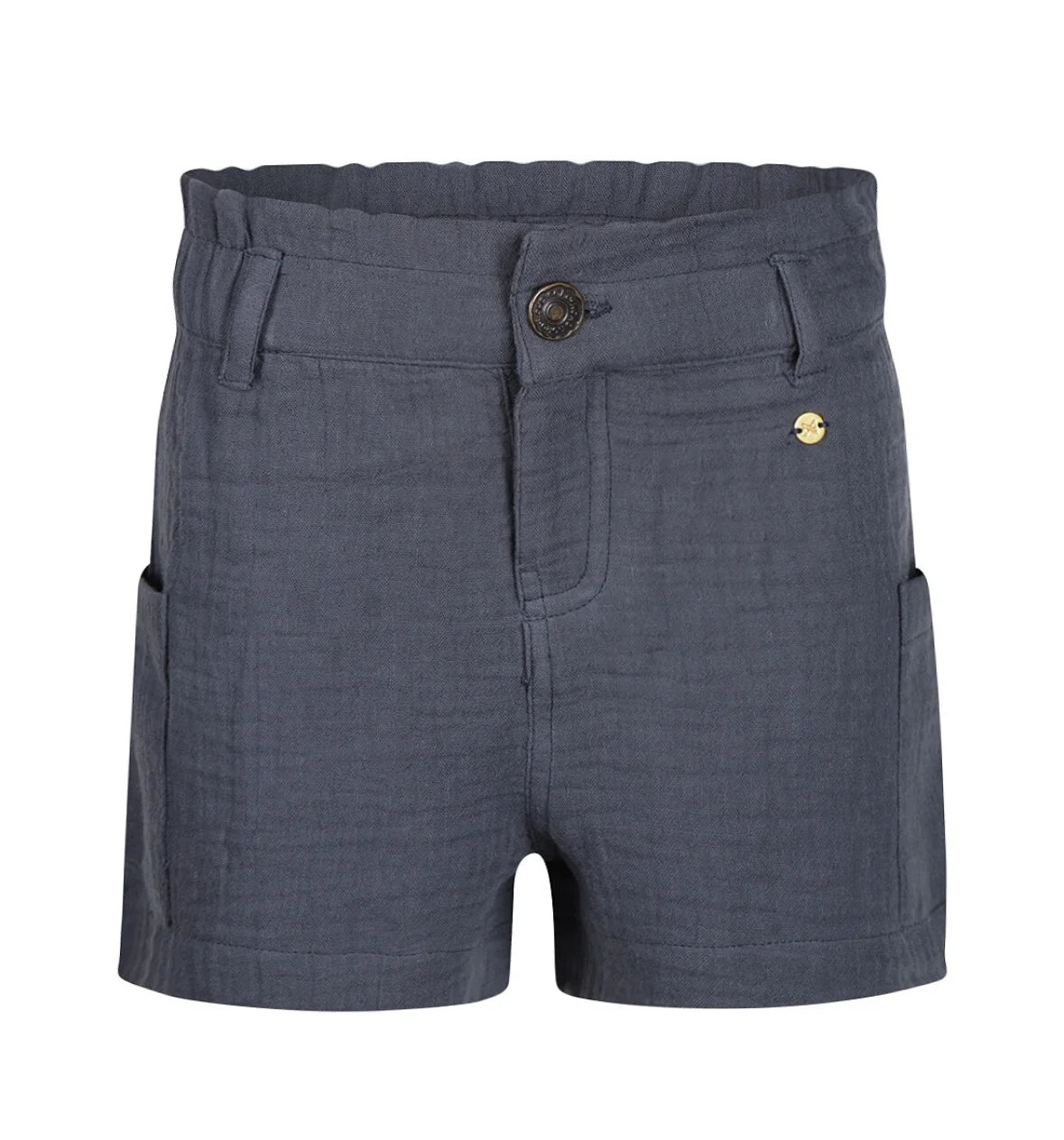 Naar de speeltuin of een playdate, met een korte broek van Koko Noko zit je altijd goed. De short is donkerblauw van kleur en gemaakt van mousseline, heerlijk zacht en luchtig. De korte broek voor meisjes heeft een elastische band in de taille en grote zakken aan de zijkant. Combineer hem met de "Hawaï" shirt uit de Koko Noko collectie en je hebt meteen een zomerse outfit!