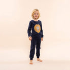 Voor kleine dromers met een stoer randje! Deze Charlie Choe pyjamaset in de kleur navy is gemaakt van heerlijk zacht velours en heeft een opvallende leeuw op de borst. De blauw velourse jongens pyjama is perfect voor avontuurlijke nachten én luie ochtenden. De comfortabele pasvorm en warme en superzachte stof maken dit de ultieme set voor relaxmomenten tijdens de koude maanden.