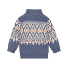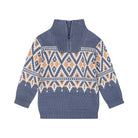 Ideaal voor koude winterdagen. Deze stoere gebreide trui in donkerblauw is perfect voor het najaar en de winter. Het mooie cognac en off white gebreide patroon geeft de jongens trui een unieke uitstraling, terwijl de hoge col met rits zorgt voor extra warmte en comfort. Gemaakt van zachte materialen - géén prikkende stof- is dit de ideale trui om je kleintje stijlvol en warm te houden tijdens de koudere dagen!