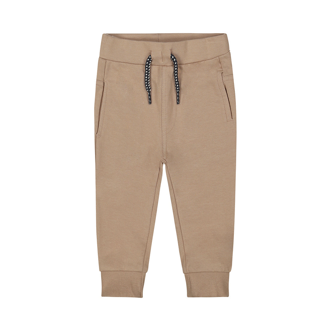 Voeg een veelzijdige basic toe aan de voorjaarsgarderobe met de jongens joggingbroek in lichtbruin. Deze comfortabele joggingbroek is perfect voor elke dag en is een stijlvolle en praktische keuze voor jongens. Gemaakt van zachte katoen met stretch, zorgt deze broek voor een heerlijk draagcomfort. De lichtbruine kleur maakt hem perfect te combineren met andere items uit de Dirkje collectie. Dankzij de elastische tailleband en het elastiek aan de pijpjes blijft de broek goed zitten tijdens het spelen en bewegen.