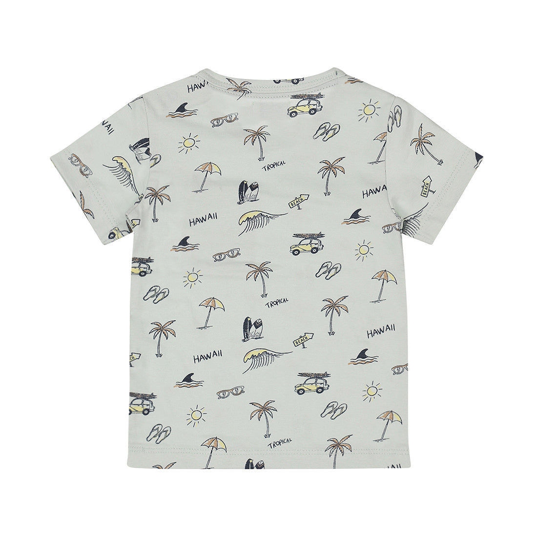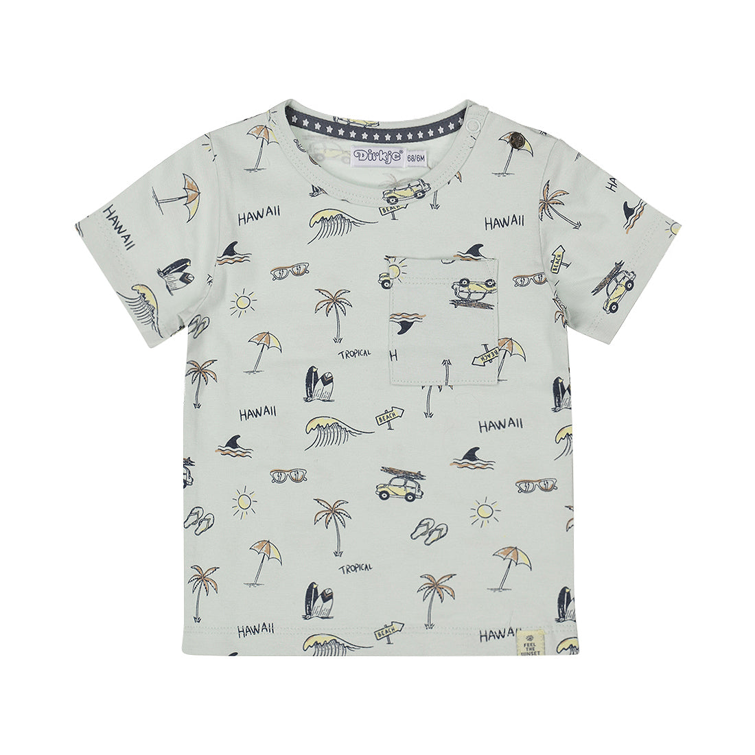 Dit Dirkje T-shirt in lichtblauw is een echte summer musthave! Gemaakt van zachte katoen met stretch, zorgt dit T-shirt voor ultiem comfort tijdens warme dagen. De vrolijke tropical print en een schattig borstzakje maakt het een favoriet voor de zomer. Perfect voor een dag vol speelplezier in de zon!