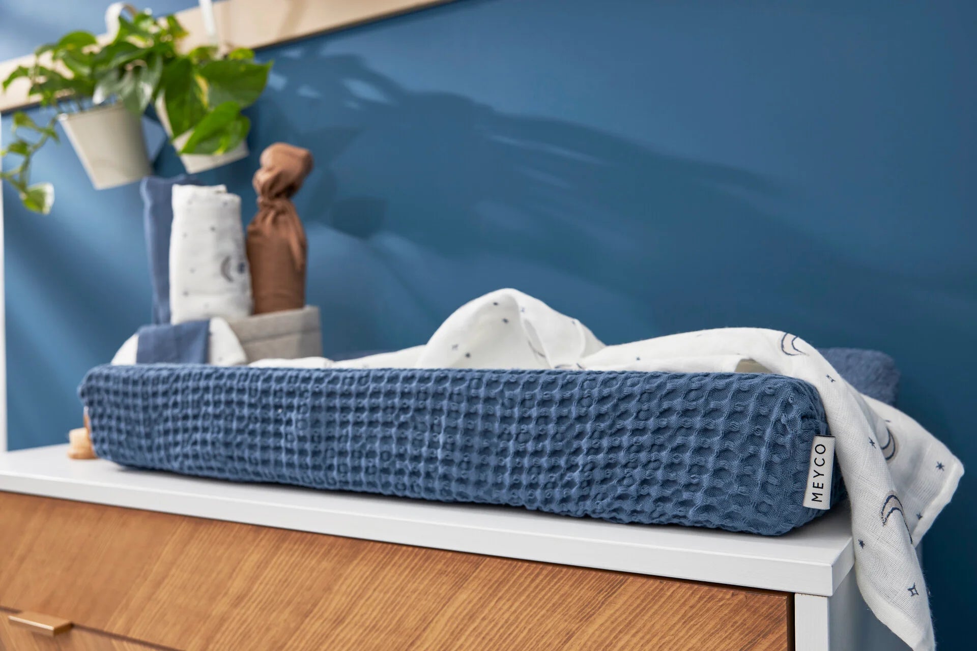 Tip: leg een Meyco Baby hydrofiele doek op het aankleedkussen, zodat je de hoes niet bij elk ongelukje hoeft te wassen.