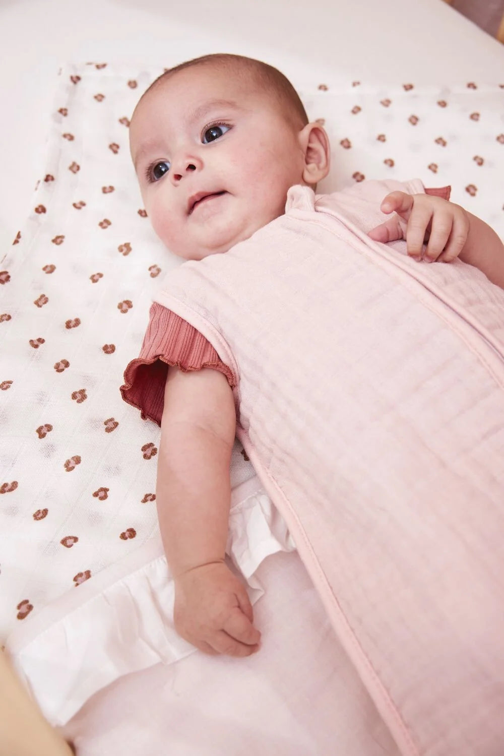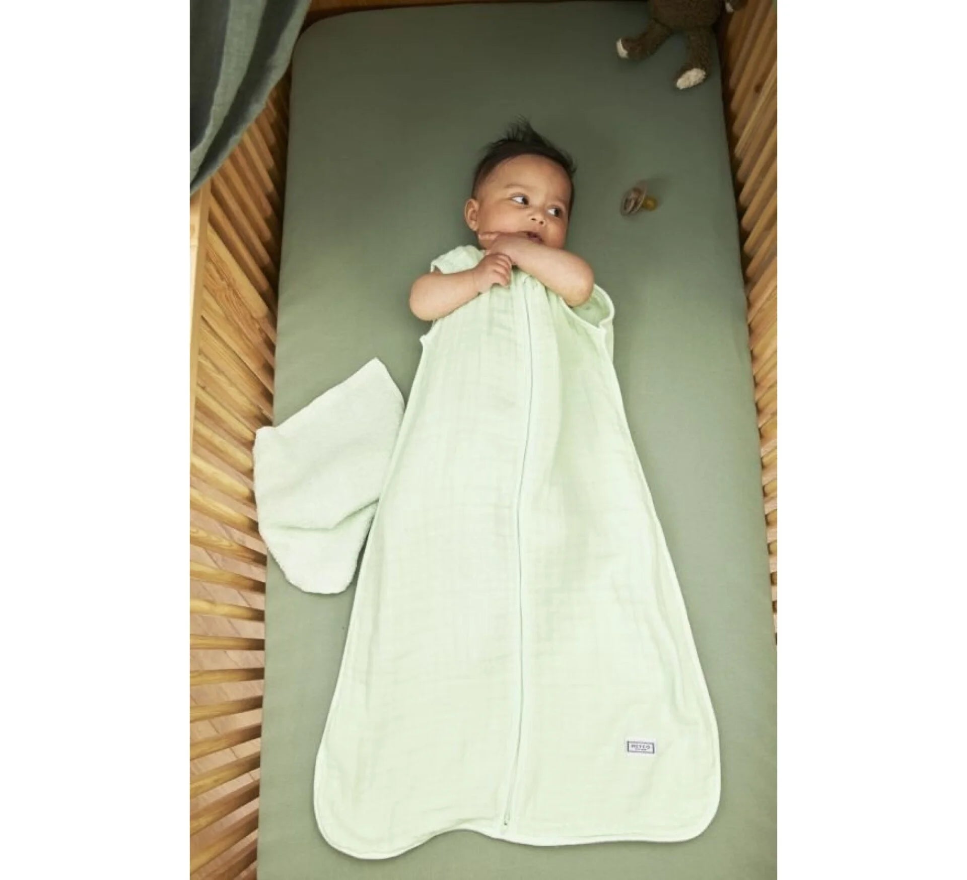 De babyslaapzak is gemaakt van 100% pre-washed hydrofiel katoen en daardoor perfect voor het gebruik tijdens de warmere zomerdagen en -nachten. Het hydrofiel katoen ademt namelijk zeer goed, heeft een uitstekende vochtopname en droogt zeer snel. Zo blijft het slaapklimaat van je kleintje tijdens de warme dagen en nachten op een perfecte temperatuur, zonder dat hij of zij het te warm krijgt.