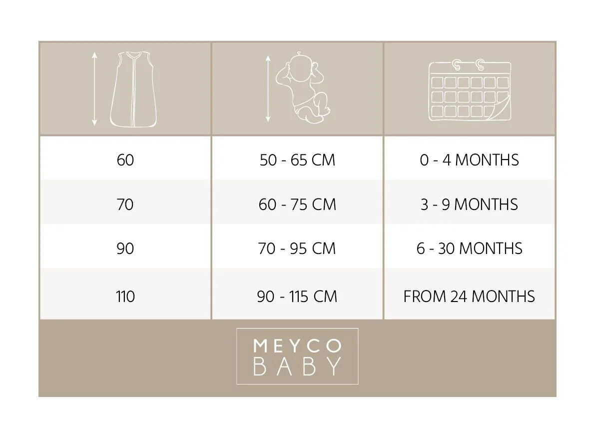 De slaapzak bestaat uit 2 lagen, gemaakt van 100% zacht katoen en heeft een polyestervulling. Het katoen ademt goed én biedt uitstekende vochtregulatie. De Meyco Baby slaapzak heeft een veilige pasvorm door de goede aansluiting bij de hals en de armpjes. De slaapzak heeft een TOG waarde van 2.5. Hoe hoger de TOG-waarde hoe warmer.
