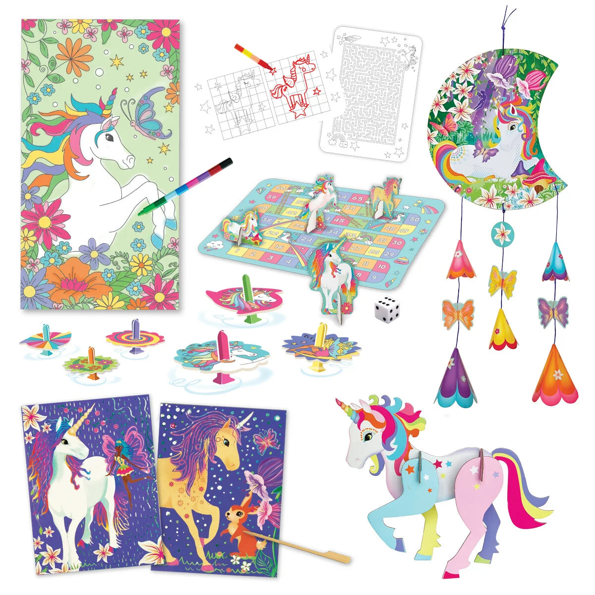1 spel en activiteitenblad om te kleuren met 1 spelmatrijs en 4 spelpionnen
